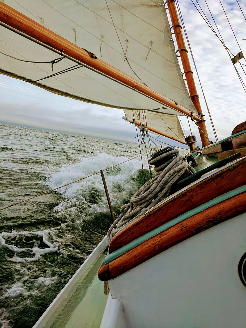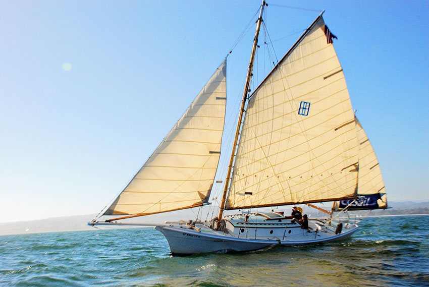 Discover "Sarah" – an all-wood 38-foot gaff-rigged Sharpie. Her design is based on a line drawing her builder, Bill Garvie from San Raphael California found in a yachting magazine from 1892. She is a Faithful reproduction, precisely built and launched in 2006. We hope you will enjoy these photos, showcasing the love and dedication to the art of wood boat building, presented on the backdrop of the Monterey Bay.